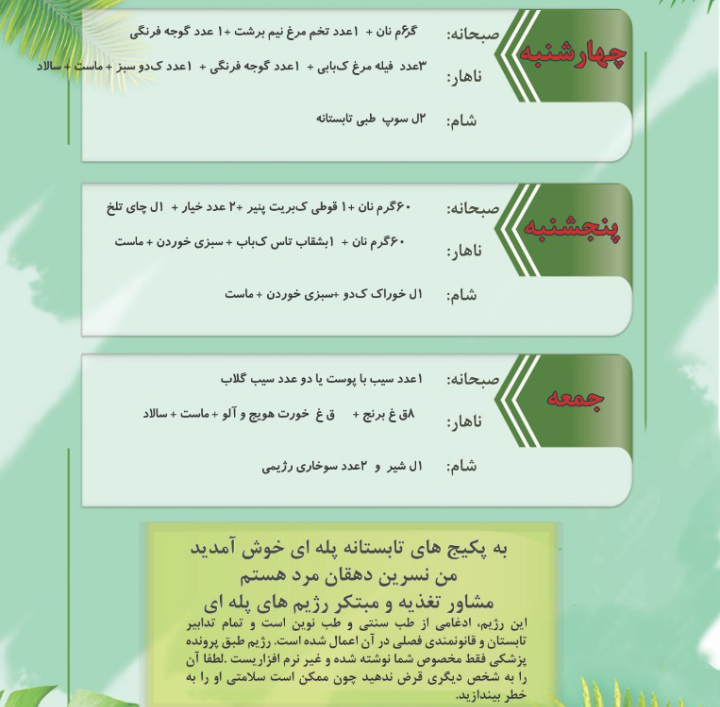 _moon_ مدیر استارتر عضویت: 1399/12/24 تعداد پست: 529 رژیم صمد پور هم دارم راضی هستین رژیم دکتر صمدپورو ؟