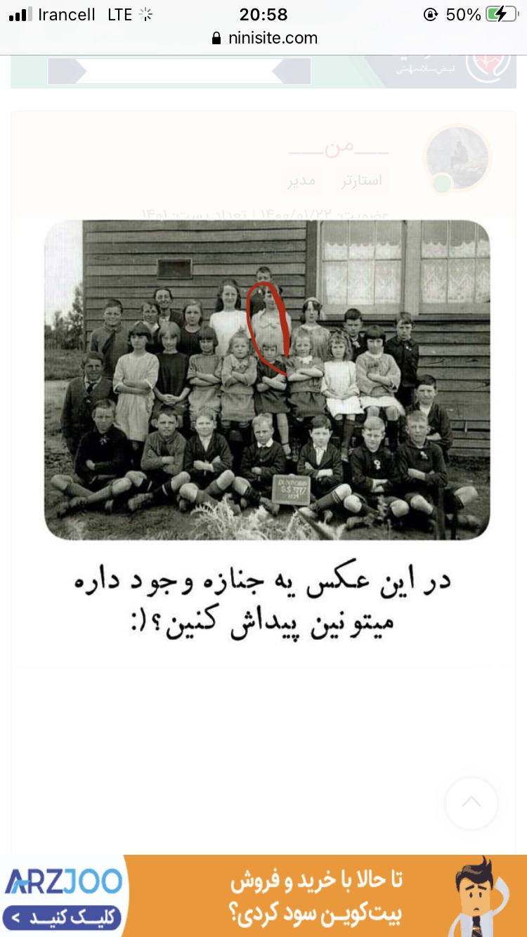 دیف اول سومی از راست.اون دختره که موهاش دوطرف سرشن و دستمال سر بسته.توی اینترنت نوشته بود مرده و به چوب وصلش کردن