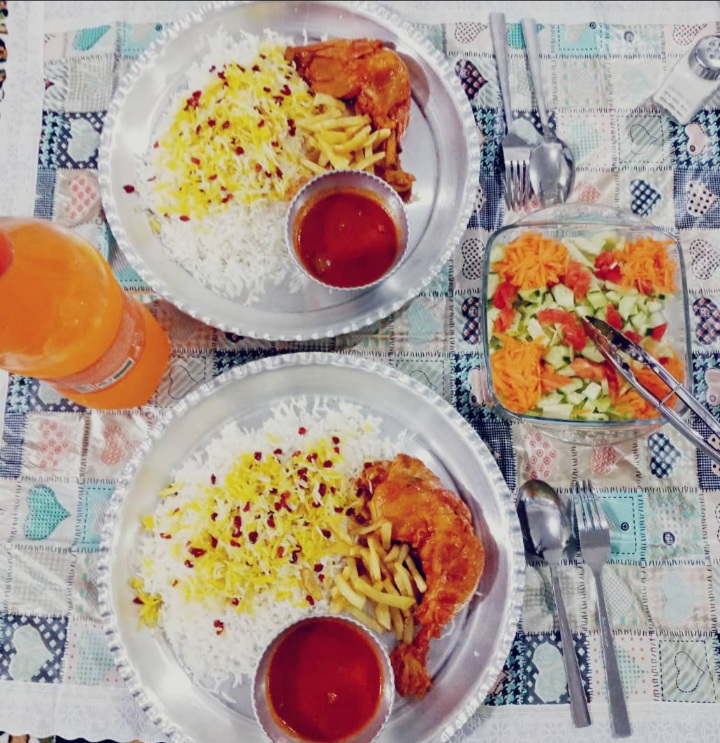 ناهار فسنجون داشتیم شام هم شوید پلو با مرغ