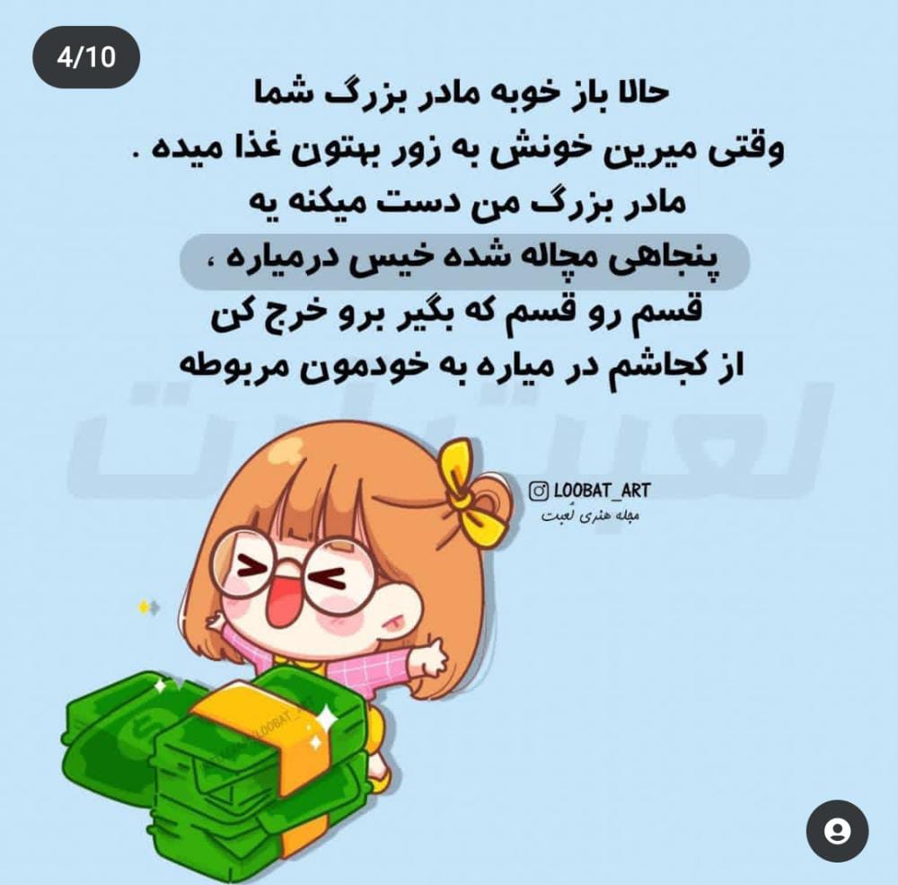 یه بارم پرسیدم مامان بزرگم که بیست ساله شوهرش مرده چرا حامله نمیشه در حالی که ده دوازده سالم بود و مادربزرگم هفتاد سالش بود دیگه نمیفهمیدم آدم که شوهر نداره حامله نمیشه یا آدم پیر بشه حامله نمیشه