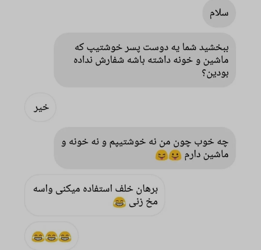 سفارشات حنای شمارپذریفته میشود🌷🌷🌷 توصیف زندگی من 🙄کاربر خانوم ۲۳ سالمہ ،این بگم ب عشقـ ایمان ندارم دلم یه همدم میخاست ک همدمم مرد نبود ـاز همسرم متنفرم چون لیاقت منو نداشت ، اینو من نمیگم و از خودم تعریف نمیکنم این حرف های دیگرونہ چون از همسرم لطمہ خوردم هم چیزم تباه شد ـ،،، دیگه خونه پدرم ا رو نتخاب کردم برای همیشہ رو مهر طلاق ب شناسنامه ام بخوره دیگ بریدم ـ باورم نمیشد کارم ب طلاق برسه هنوز کار های دادگاهیم انجام میدم طلاق نگرفتم ،ولی کسی ازسرنوشت خبر دار نیس یہ دختر ناز دارم ک شب روزم با دخترمہ عاشق دخترمم و میبوسم روے دخترم را یه موضو ع منو نارحت میکنه همه میگن ببی فیس چون میگن بهت نمیخوره دخترت باشه 😬😐 چ خوبه دخترم بزرگ بشه با هم درد دل کنیم بعد مشکلات زندگیم عصبی شدم ب شدت خانوم مهربونی بودم هنوزم هستم ولی فکر گذشته میاد سراغم روح روانم داغون میشه دلم میخاد بمیرم این دعاے همیشگی منه این متن هارو براے این نوشتم چون دیگردون میگن بزاررامضات تا بشناسیمت منم احترام گزاشتم بهتون این بگم از رل و دوست پسررمتنفرم ـ لطفا برای ارامشم صلوات بفرس ممنونم رفیقــ ❤ــــــــــــبعد شش ماه دوستان اشتی کردم انگار شوهرم منو دزدید من راصی ب برگشت نبودم همین خستم زندگیم هنوز پاشیدس حالم بد میشه اون عنوان اولی از چند ماه پیشه ک خ نه بابا بودم ولی فعلا تو یه اتاق سه در چهار زندگی میکنم با شوهر ک کلی منو دق میده دخترم گاهی از ترس چشمای خوشکلشو با دستاش میبنده ک صحنه دعوای مارو نبینه شوهرم سگه تازه سگ بیابون شرف داره خدا نگه دار یه صل