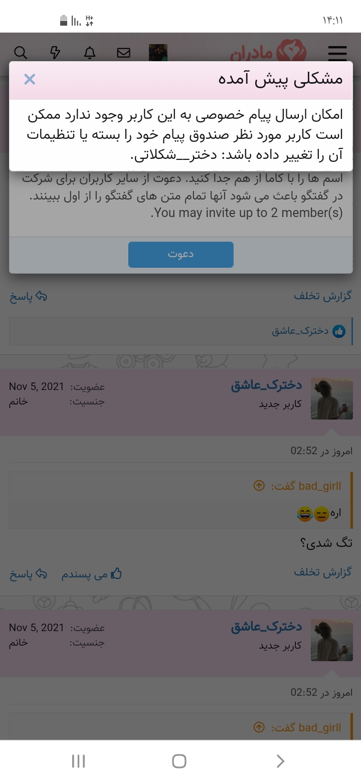 bad_girll عضویت: 1400/06/04 تعداد پست: 8726 این مادران چطوریه سردرنمیارم خیلی سخته 🤦🏼♀️🤣 🖤💛دکتری ندیدم که درداموبفهمه 💛🖤شبی نبود بگم بره صب قشنگه :))💛🖤