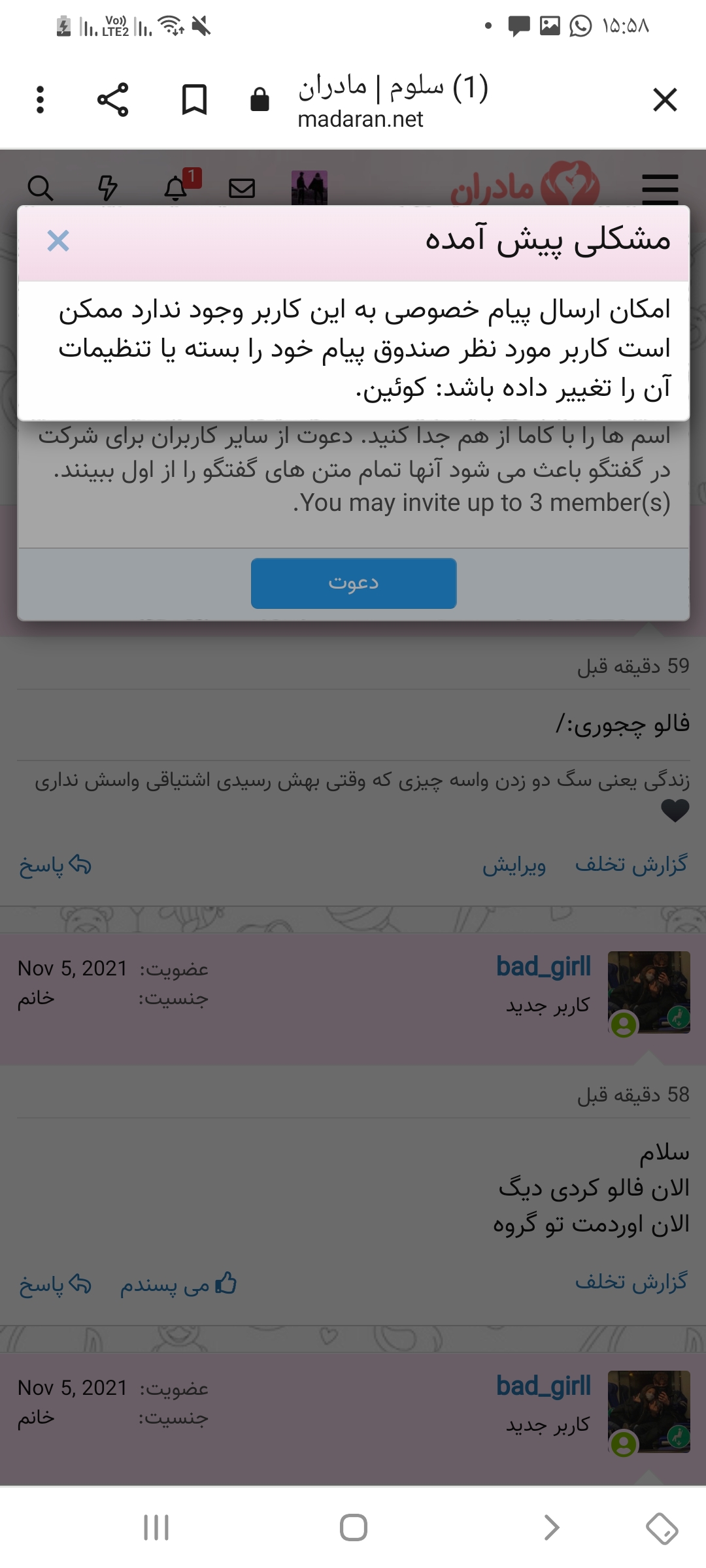 تنها000 مدیر استارتر عضویت: 1398/02/06 تعداد پست: 21663 اخه شاید پریسام بیاد اونجا یدفه اونجا تاپیک میزنیم میحرفیم :)