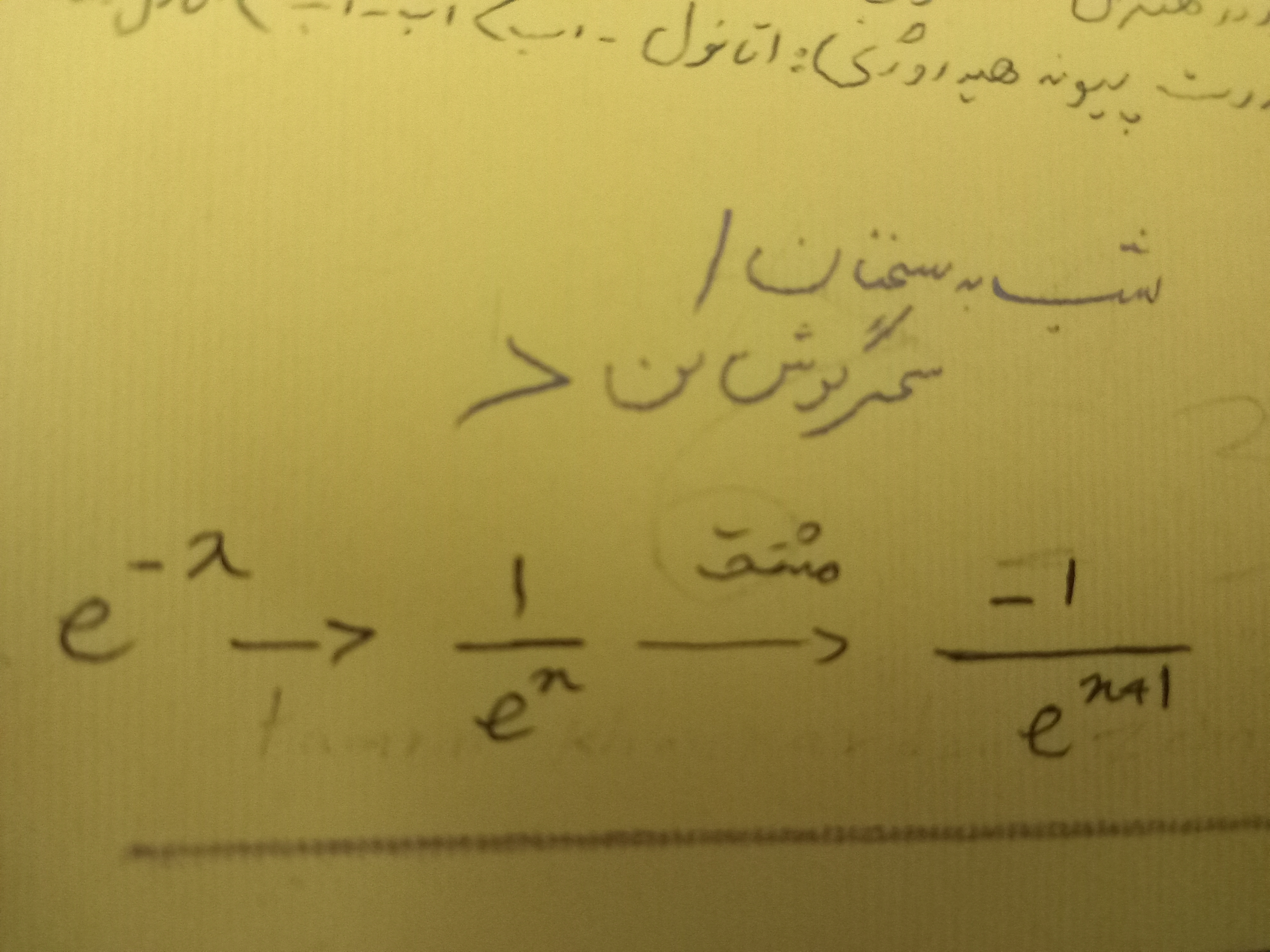 shaqayeqq2022 مدیر استارتر عضویت: 1396/06/27 تعداد پست: 2055 منفی eبه توان x اگر بخوام مشتق همینو بگیرم چی؟ این چی میشه؟