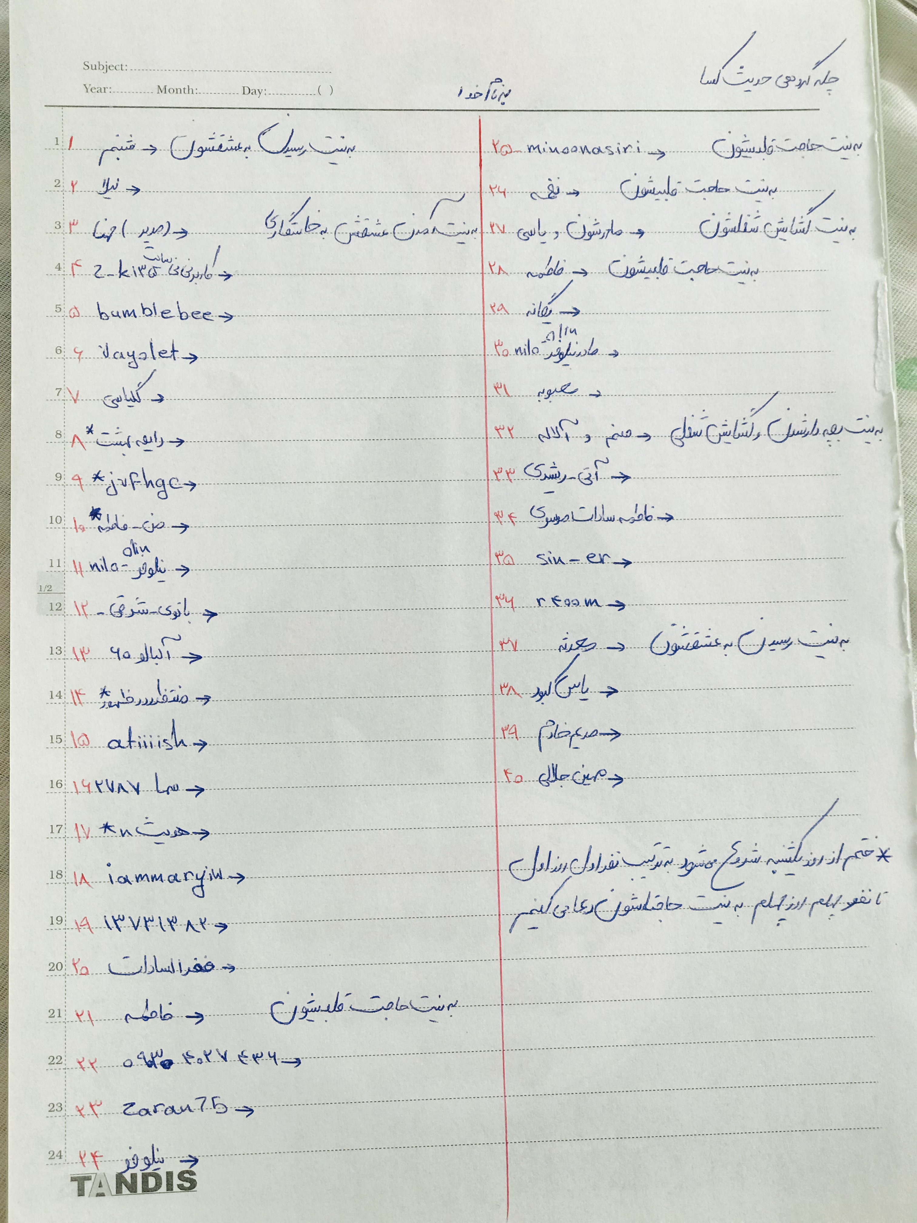 ختم فردا روز تولد امام حسن شروع میشه به مدت ۴۰ روز هر روز به نیت ینفر از دوستان از نفر اول روز اول تا نفر چهلم روز چهلم به نیت حاجتاشون دعا میکنیم کسایی که حاجتشونو ننوشتم فقط بگید به نیت حاجت قلبیشون