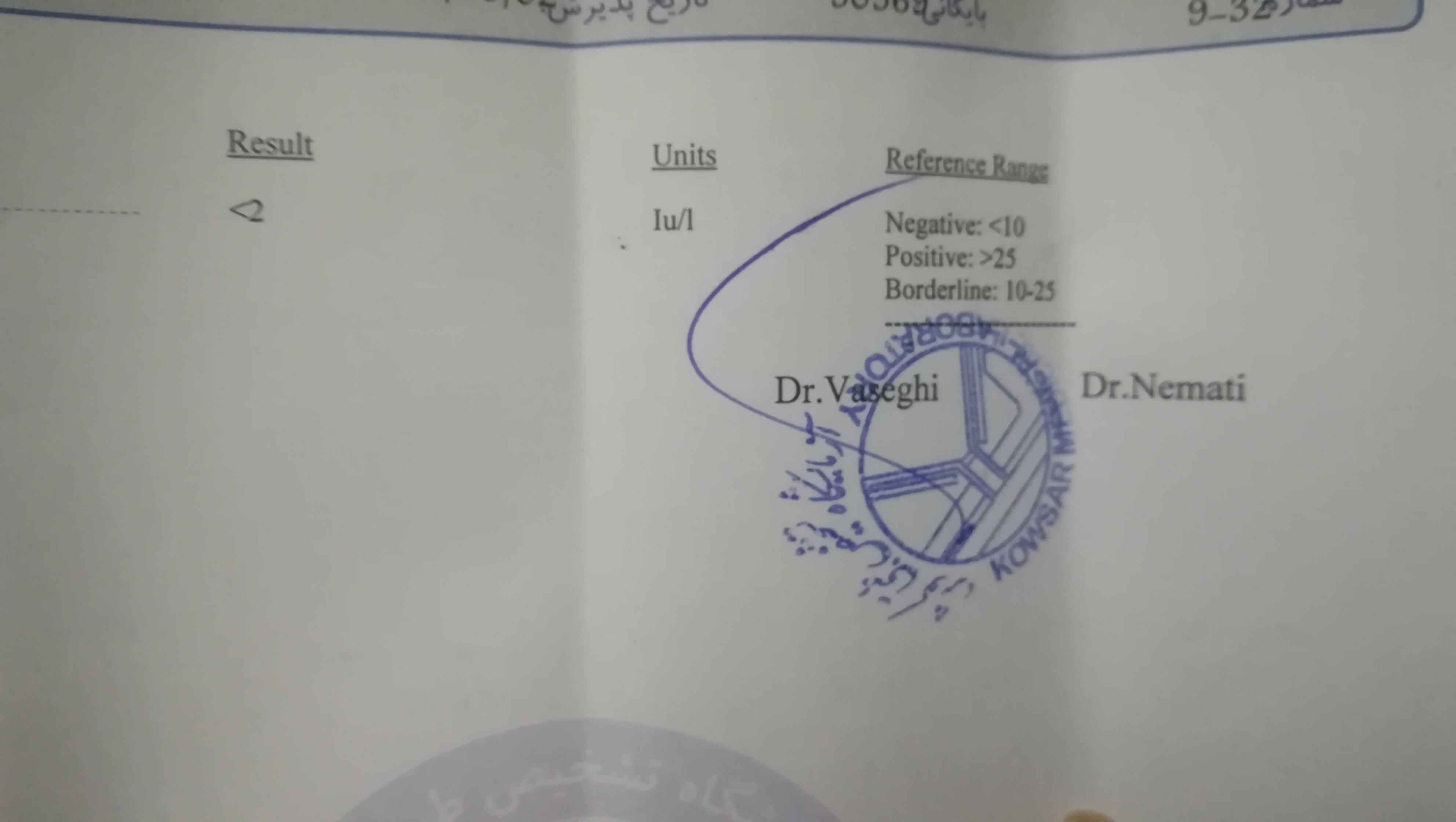 اسی متاسفانه منفیه با جواب ازمایش برو دکتر تا بهت امپول بده باز شی