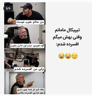 دختر_بهار_ عضویت: 1399/10/29 تعداد پست: 4731 یه بار مامانم اومد بهم بگه کم نون بخور معدتو میگیره گفت کممعده بخور نونتو میگره😐😂 چــه خـــبرا آیـــنه جـــان؟ هـــیچ خــــبر!،غــــمگیـنم...یـــک نـــفر آدم و چـــند نـــفر غـــمگینم...