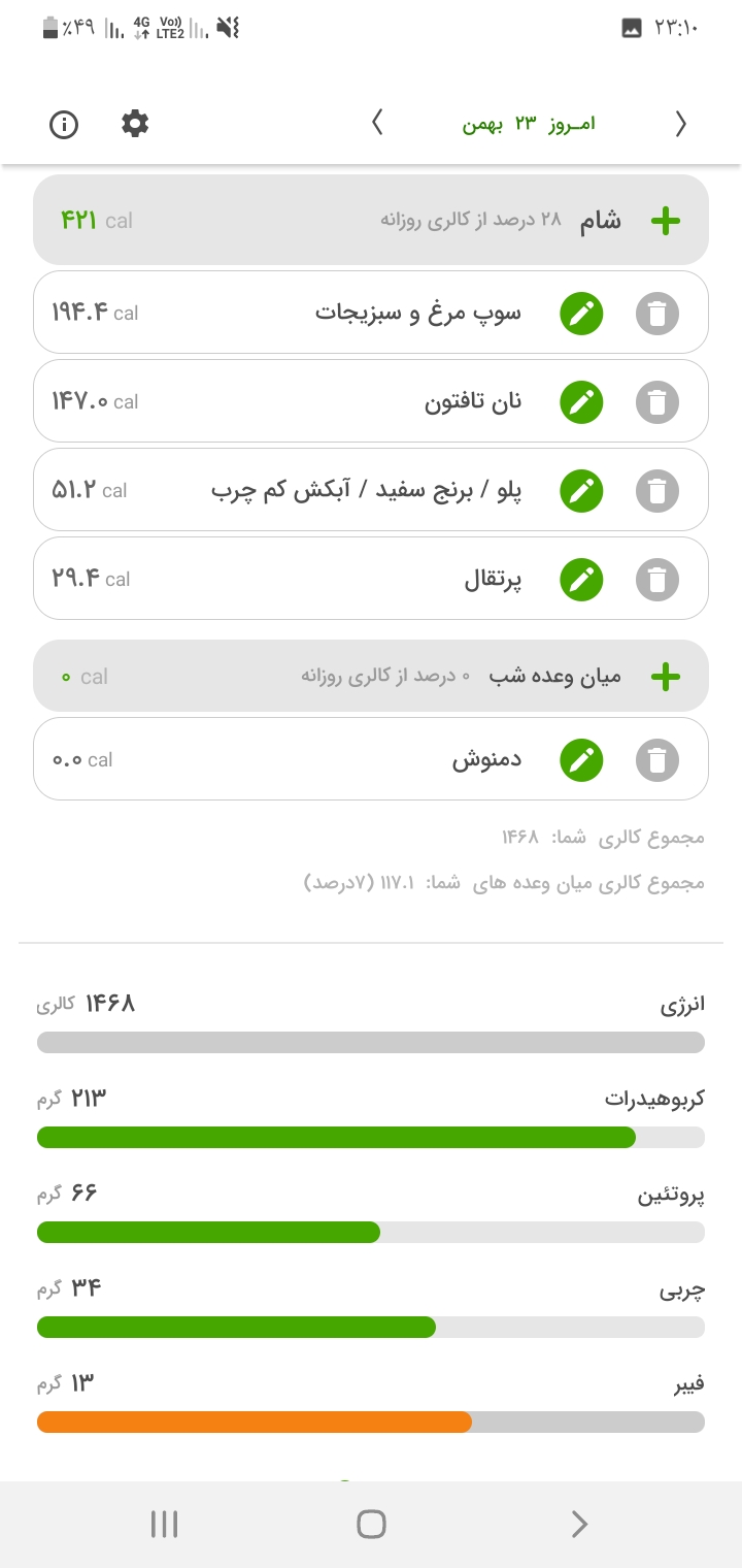 شام.یه لیوان اب ابگوشت.سه ونیم‌قاشق کوبیده ابگوشت.سالاد کاهو با دوقاشق سس.