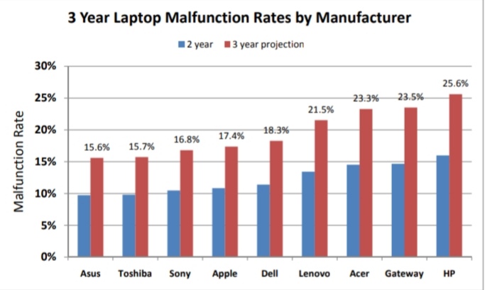 adadb مدیر استارتر عضویت: 1400/07/06 تعداد پست: 121 این تصویر میزان خرابی لپ تاپ ها پس از دو سال و سه سال را نشون میده در این نمودار گفته شده که hp میزان خرابیش از همه بیشتره