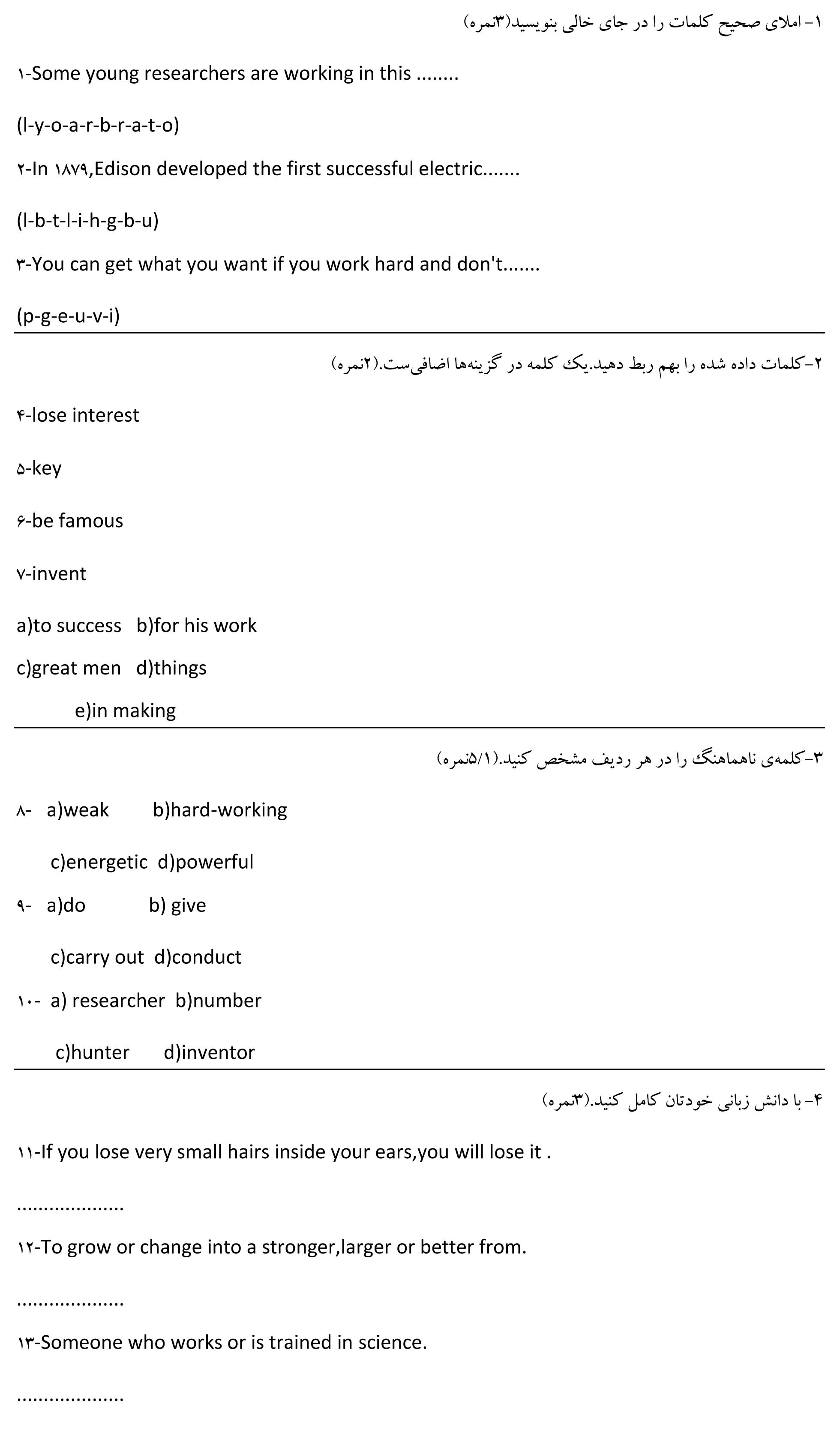 یک laboratory  دو lightbulb  سه give up  فعلا اینارو داشته باش  همش رو بگم ب ...