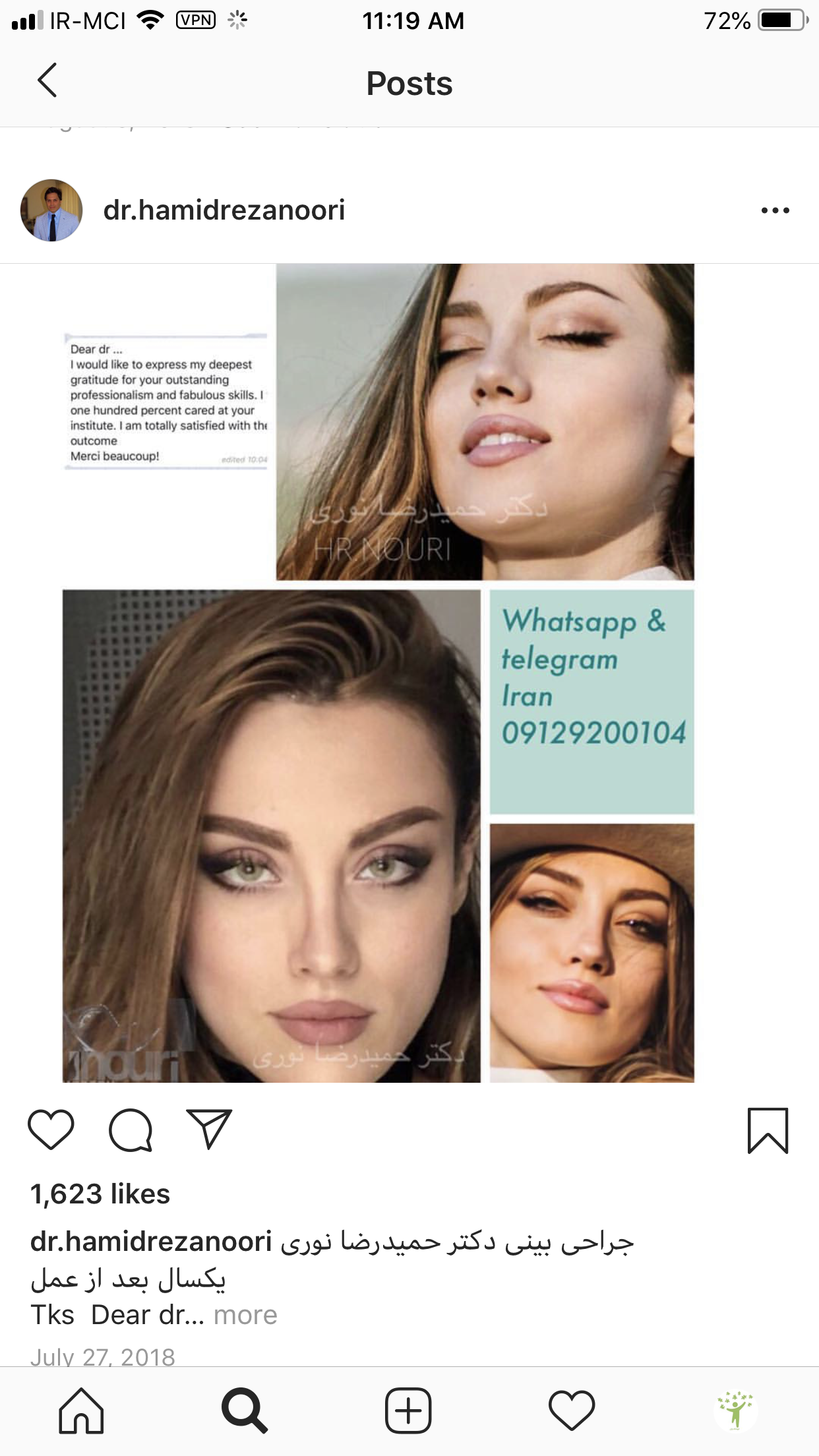 البته ایشون توی مطب ثابتی بود و یکسال بود که ترمیم کرده بود ترمیمش بد نبود ولی خب، خیلی با یه بینی ایده ال فاصله داشت. مثل عکسهایی که بعد از عمل زیبایی اسید پاشی صورت گرفته میشه، در حد خودش خوب بود بعد ترمیم، ولی در واقعیت بینی دیگه از بین رفته.
