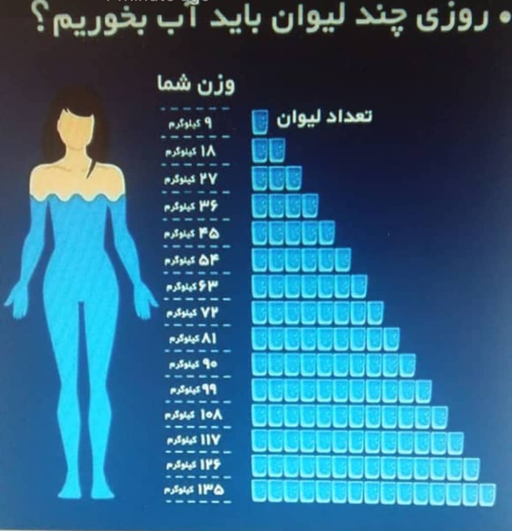 پ.ن. چارت ميزان آب مورد نياز بر اساس وزن افراد