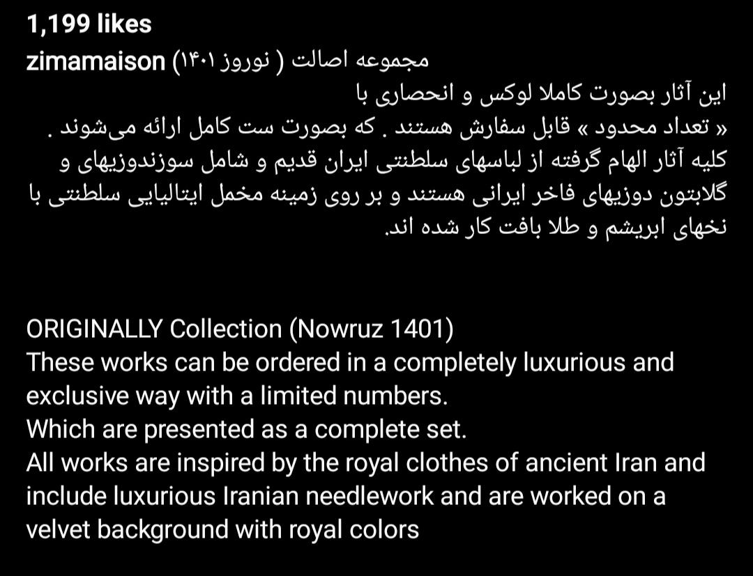 klaraa مدیر استارتر عضویت: 1400/12/16 تعداد پست: 831 لباسی شبیه لباسهای شهبانو گیر بیار. همشون شیک و اصیلن. پارسال دقیقا از ایشون الهام گرفتم یه لباس بلند آبی درباری بود با نیم تنه سوزن دوزی شده طراح لباس برای امسال اینارو بهم پیشنهاد داده دیگه یکی از این سه تارو انتخاب میکنم تایم برای طراحی دوباره لباس ندارم😑
