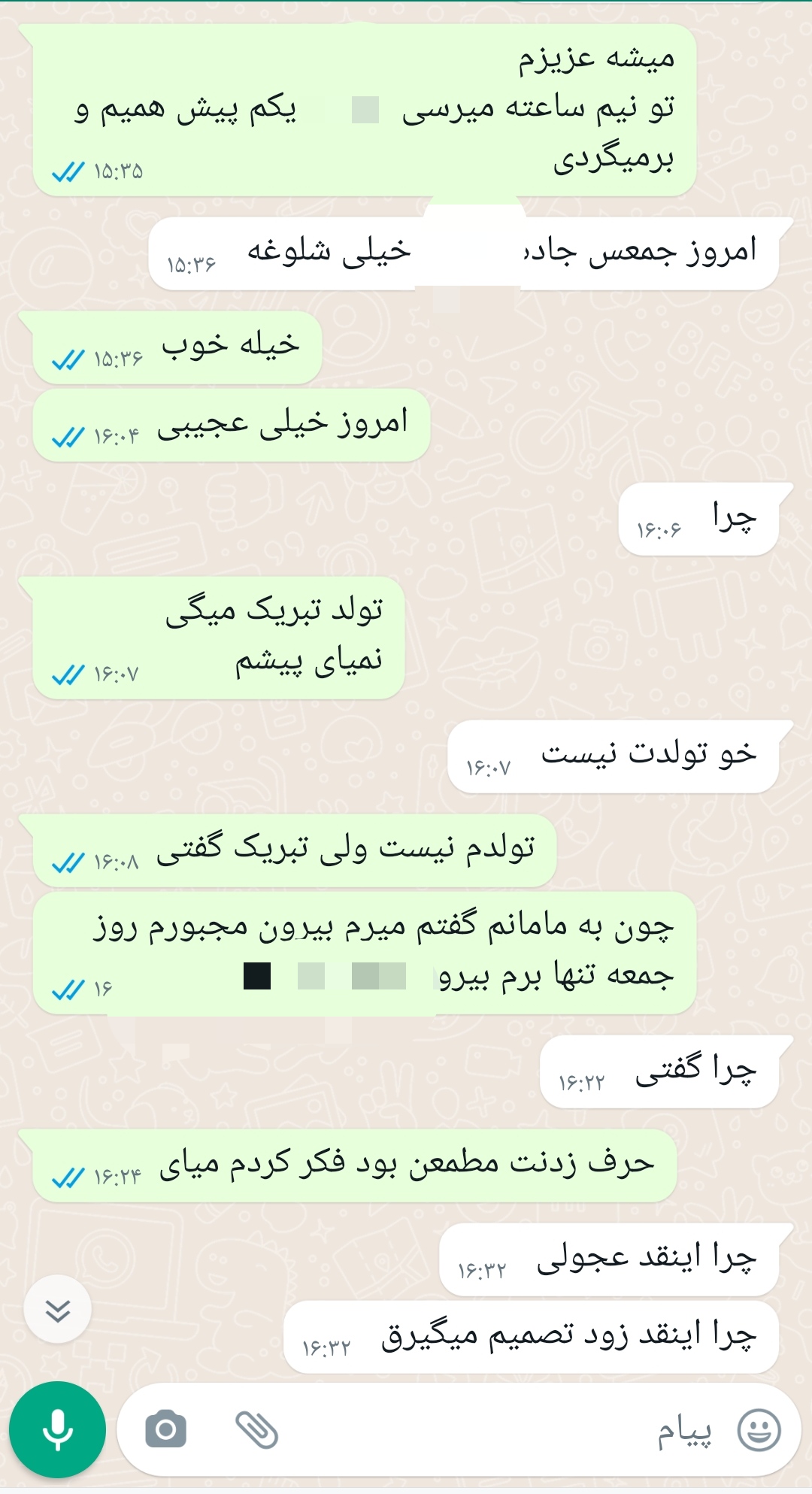 امروز پیام داد سلام و احوالپرسی بعد گفت تولدت مبارک