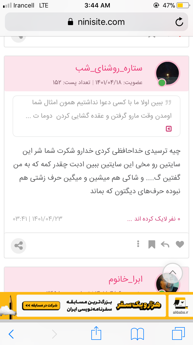 اونی هم کع اومد تو هر تاپیکی گف من شما رو میشناسم بازم شما بودی مگ ما شما رو میشناسیم کلا پس لطفا توهین نکن چون داری ادبت نشون میدی