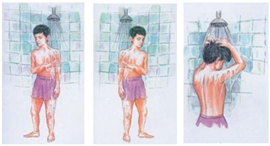 بعد سر وگردن رو میشوری دست میکشی نیازی نیست خم بشی همونجوری زیر آب باشی کافیه پشت گوش و اینا و دهنتم یه آب بگردون تف کن