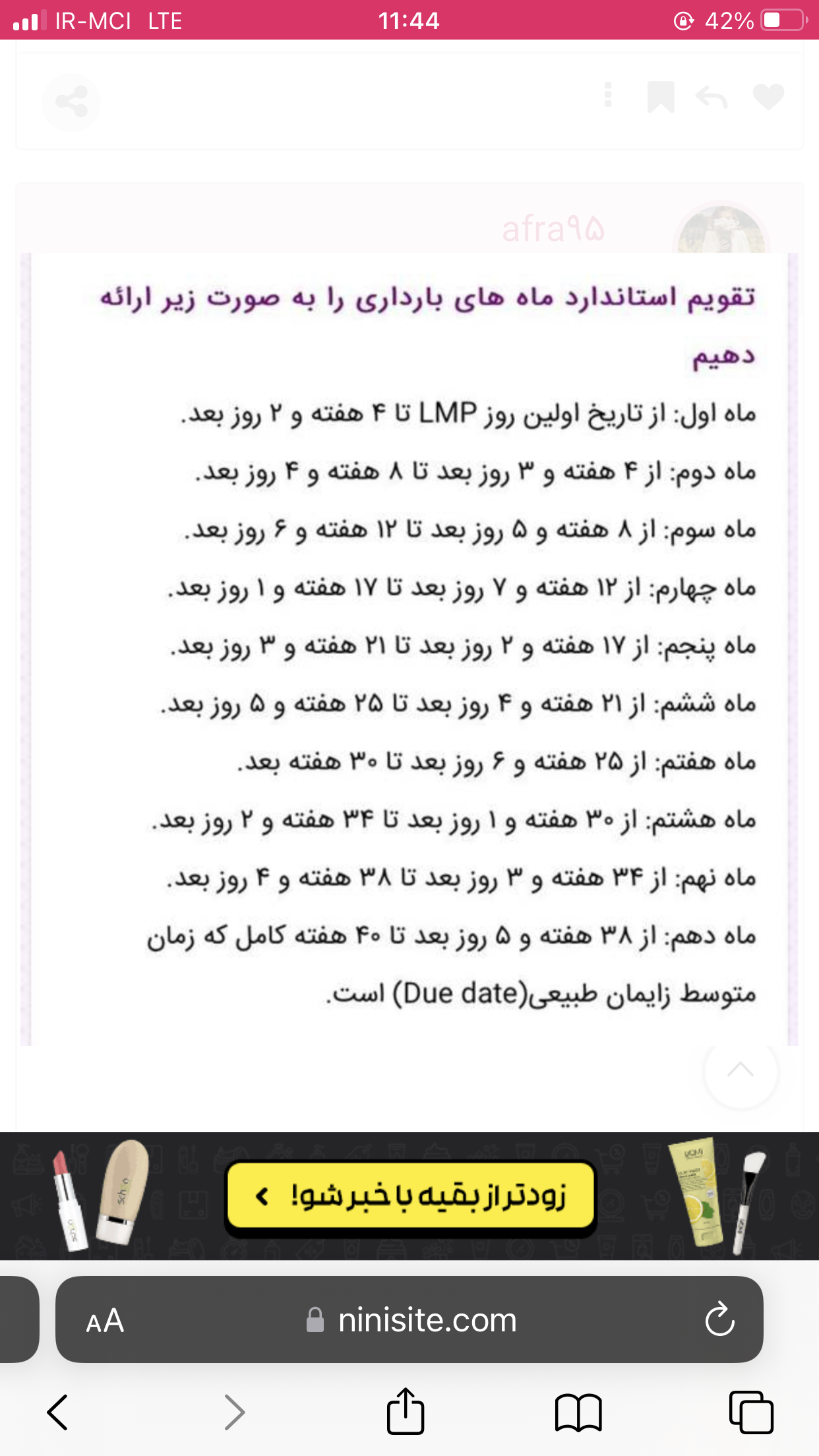 دختر_خونده_ادیسون عضویت: 1401/09/03 تعداد پست: 668 چجورز محاسبه کردین ؟سونو دادین؟ بر اساس آخرین پریود حساب میشه گلم