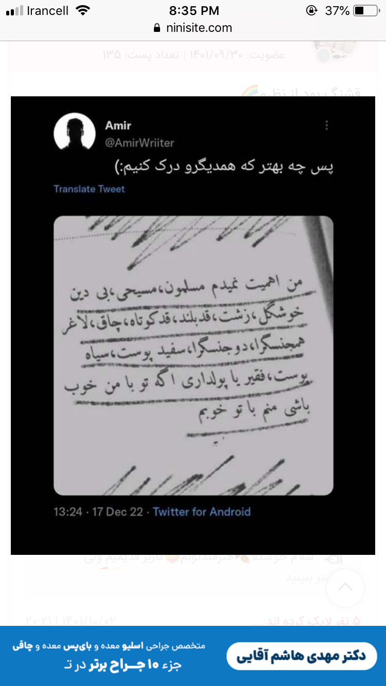 تو برام خیلی قشنگیا 💜اصن تعریف من از زیبایی ینی وجود تو❣️میدونی داشتنت مثل جاری بودن مورفین تو رگای یه مریض بد حاله 💊 وقتی هستی خوب ترم 🙂 وقتی هستی حالم بهتره🫂 وقتی هستی آرومترم🙃 اصن بودنت ینی دلگرمی🥲 دلگرمی قشنگی ک به تموم پوچی های دنیا می ارزه👫😊